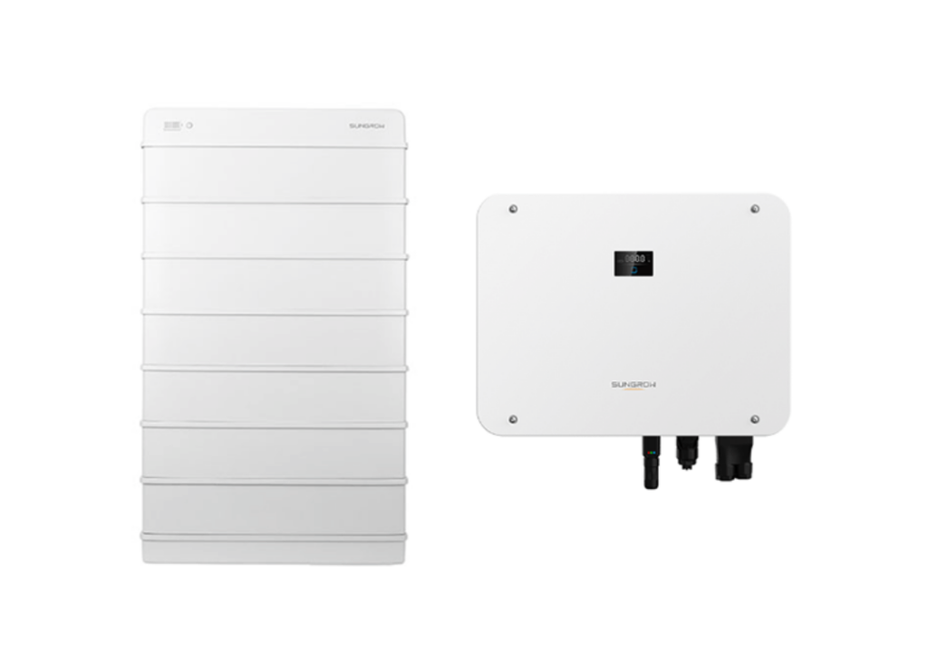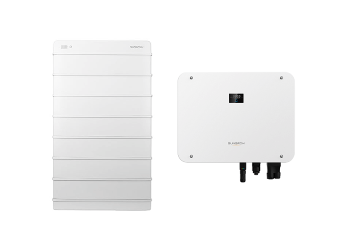 Mit der SH-T Hybrid Serie startet Sungrow in die Leistungsklassen von 15 bis 25 kW. 3 MPP Tracker mit hohen Eingangsströmen sowie hohe Ladeströme zum Speicher schaffen beste Leistungswege. Dank dem extrastarken Backup-Bypass mit bis zu 63 Ampere kann das komplette Haus an den Ersatzstromanschluss des Systems angeschlossen werden. Die bewährte Vollausstattung bei der Kommunikation und den Steuerkontakten für FRE und Wärmepumpe ist selbstverständlich an Bord. Der bewährte Hochvoltspeicher der SBR Serie kann in platzsparender Stapelbauweise ohne zeitliche Begrenzung auf bis zu 25,6 kWh erweitert werden.