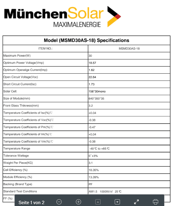 Das monokristalline Solarmodul  mit einer Nennleistung von 30 WP eignet sich aufgrund seiner geringen