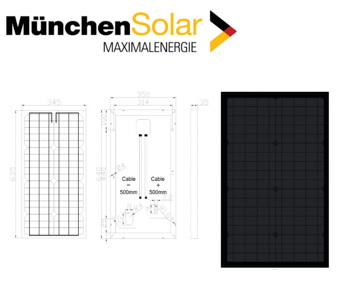 Solarmodul 12V 30Watt Monokristallin in Schwarz